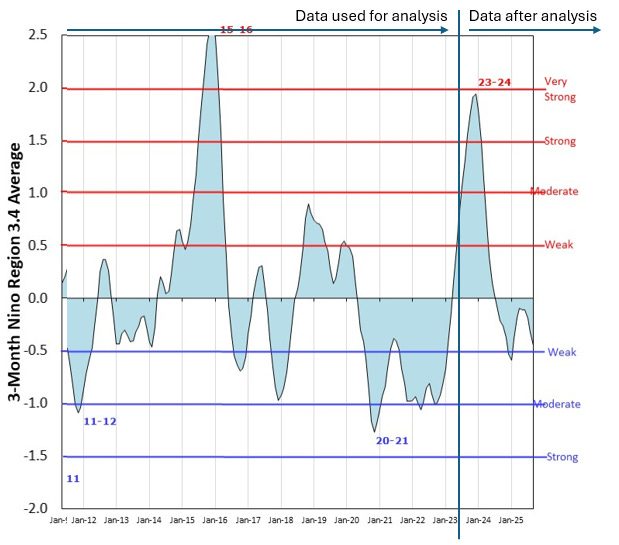 Discover how cycle analysis of El Niño sea surface temperature anomalies can forecast global weather patterns and impact economies worldwide.